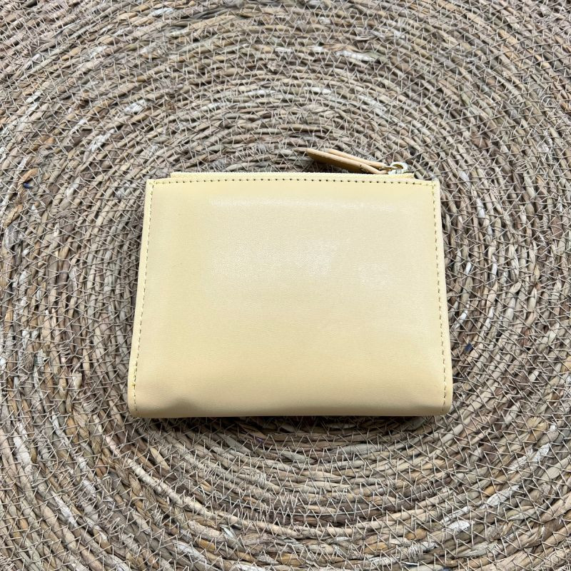 Cartera de tacto rugoso de polipiel con unas dimensiones aproximadas de 12.5x10 cm
