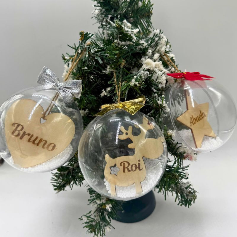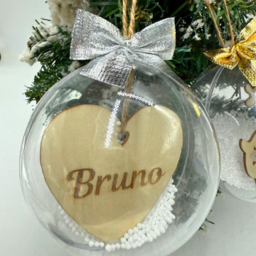 No olvides guardar tu personalización para poder agregar al carritoBola de Naviad de 8cm de diámetro personalizada en forma de corazón.
