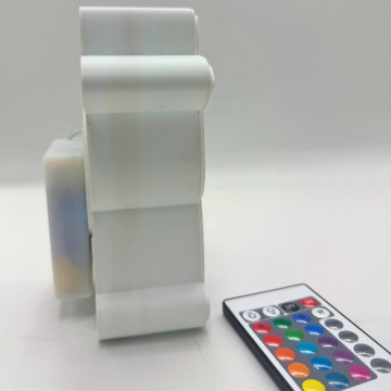 Tiene un tamaño de 15 x 12 cm y funciona con pilas, lo que permite colocarla fácilmente en cualquier lugar sin necesidad de enchufes. Incluye mando a distancia para cambiar los colores y crear distintos ambientes según el momento.
